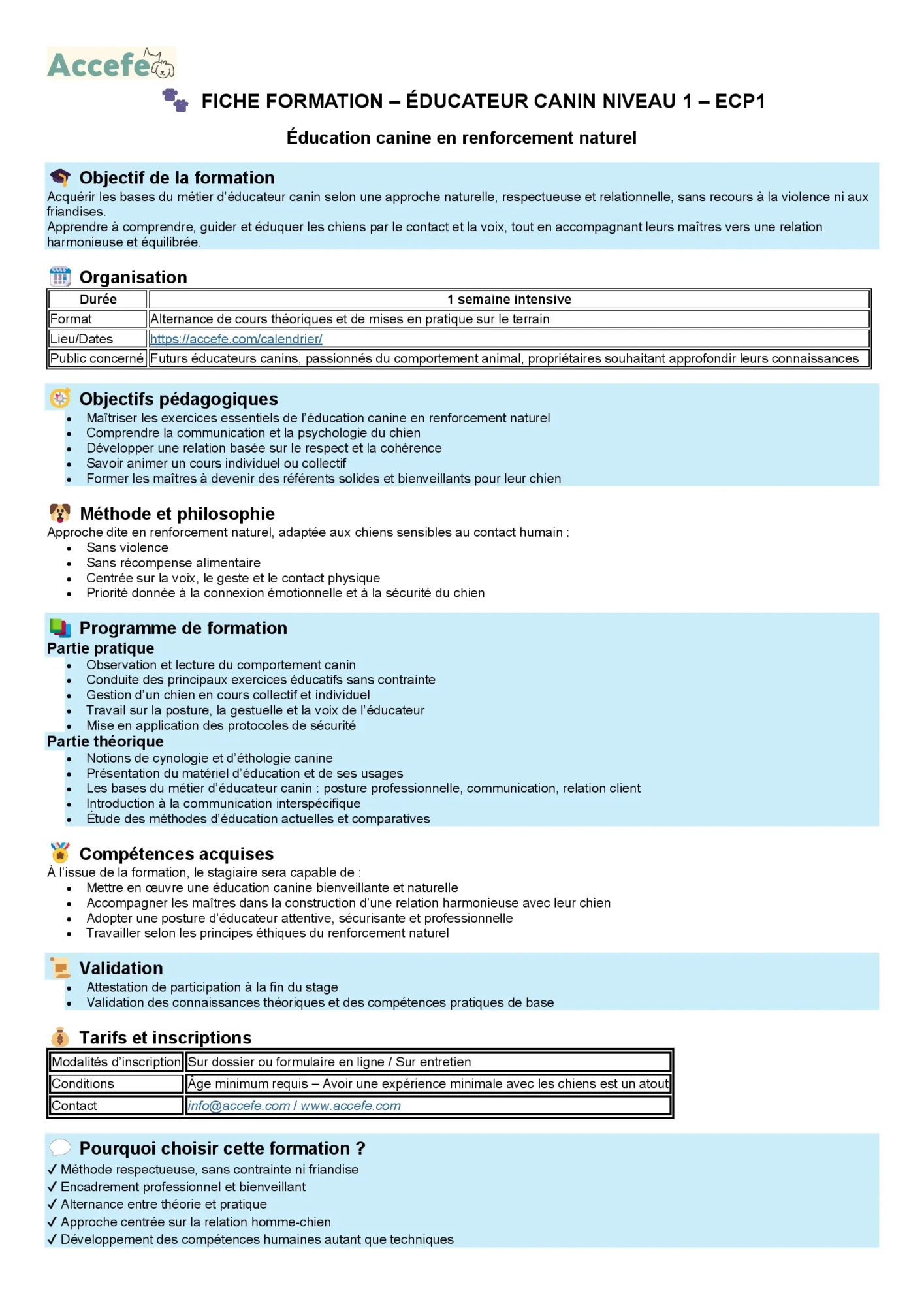 ECP1 – Éducateur Canin Professionnel niveau 1